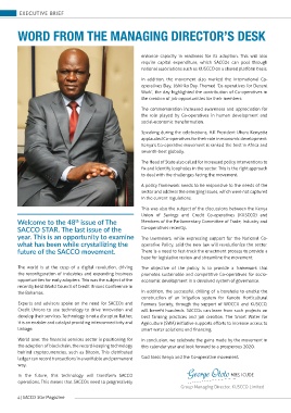 operations. This means that SACCOs need to progressively Group Managing Director, KUSCCO Limited