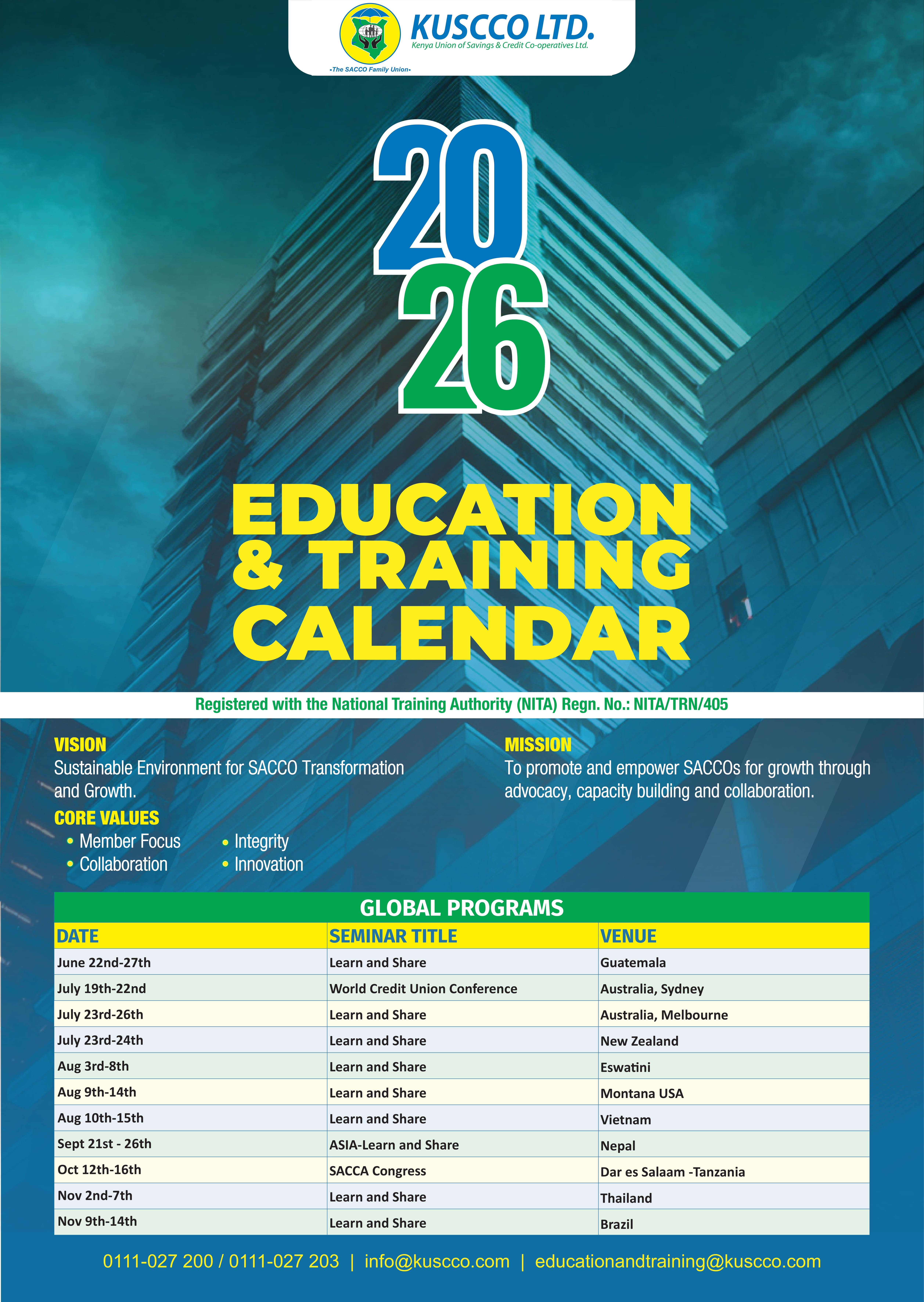 We commit to consistently promote SACCOs through advocacy and provision of quality technical and financial products that exceed the members’ expectations.