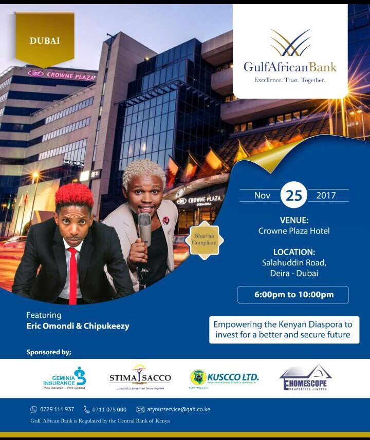 KUSCCO Ltd has partnered with Gulf African Bank to reach Diaspora Kenyans in Bahrain and Dubai. We will be presenting and exhibiting our investment products to Kenyan Community in Bahrain on 24th November, 2017 and on 25th November, 2017 to Kenyan Community in Dubai.